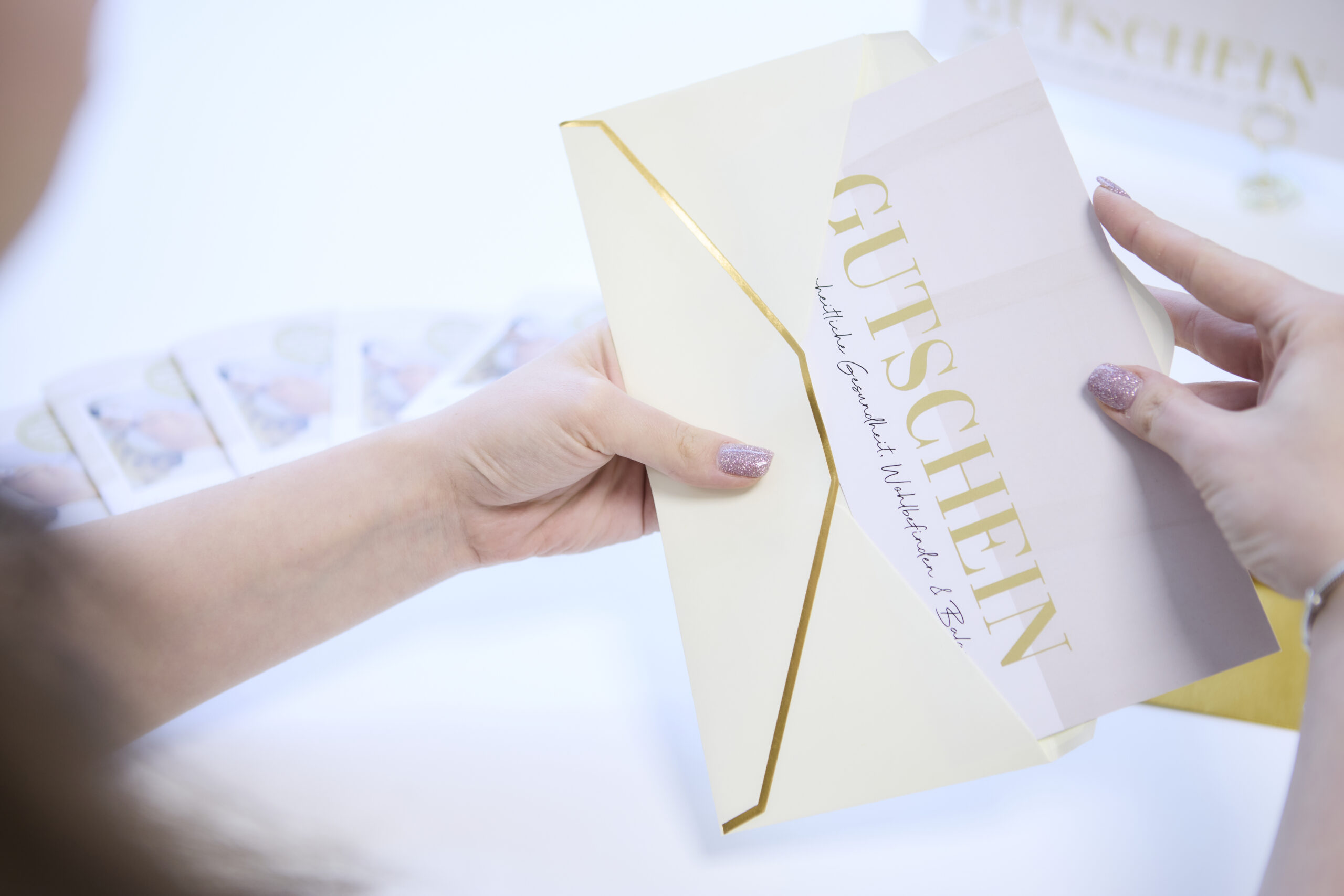 Unsere Gutscheine sind als Geldwertbetrag oder für eine konkrete Leistung erhältlich und können ab jetzt vor Ort in der Praxis oder auch online über unser Terminbuchungssystem der Webseite erworben werden. Sprechen Sie uns an, wir beraten Sie gerne und stellen den Gutschein individuell aus. Gerne senden wir Ihnen diesen auch per Post zu, nutzen Sie zur Adresseingabe dazu den Punkt „Gutschein“ in unserer Online-Rezeption.